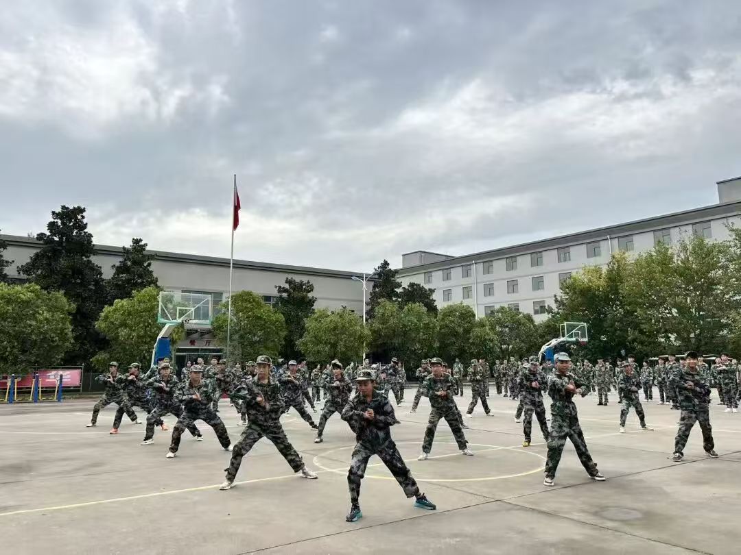 最后,董建华教官带领学生开启擒敌拳表演,“哈!”“嘿!” 的呐喊声铿锵有力,出拳迅猛、踢腿凌厉,格挡、冲拳、侧摔等动作行云流水,每一个招式都展现出扎实的训练功底,将军人的刚毅与果敢诠释得淋漓尽致,瞬间点燃全场氛围,主席台领导纷纷点头称赞,台下欢呼声与喝彩声此起彼伏,充分彰显了我校学子在军训中锤炼出的过硬本领与精气神。