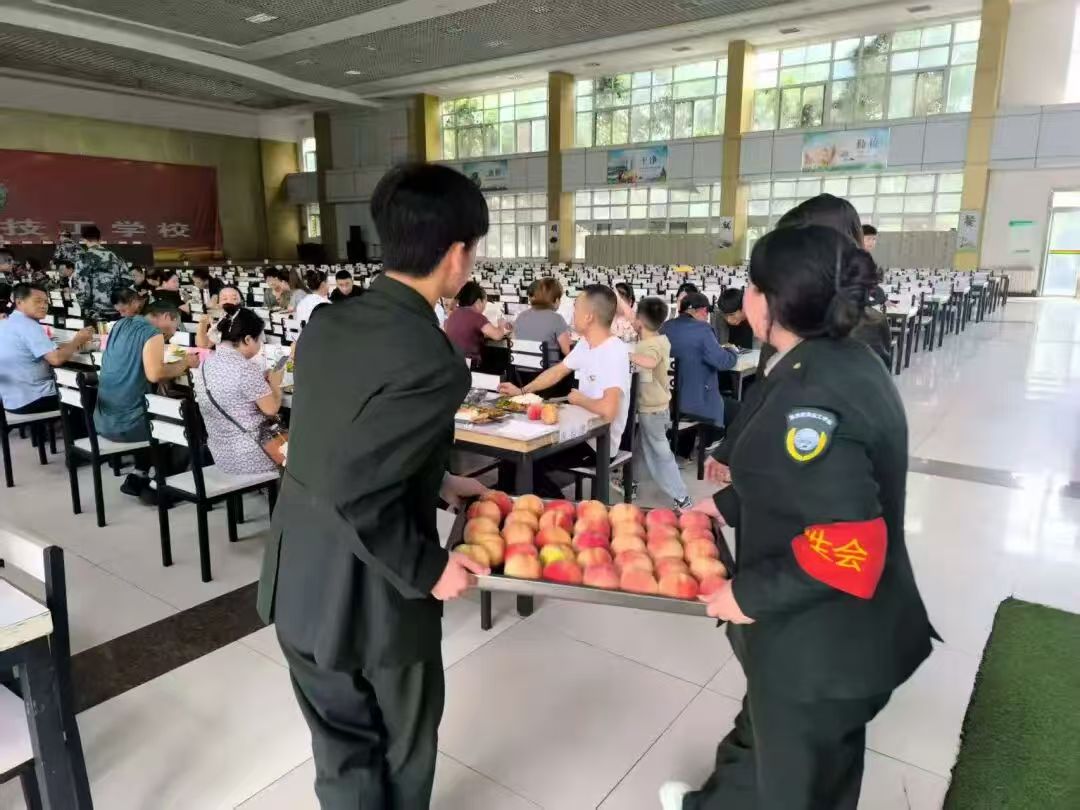 随后,家长与孩子一同前往学校食堂就餐,看着餐盘里荤素搭配的菜品、热气腾腾的汤品,不少家长主动询问孩子 “平时吃得习惯吗”,孩子笑着点头的模样,让家长对学校的饮食保障更放心,简单的用餐时光里,满是亲子间的温馨互动。